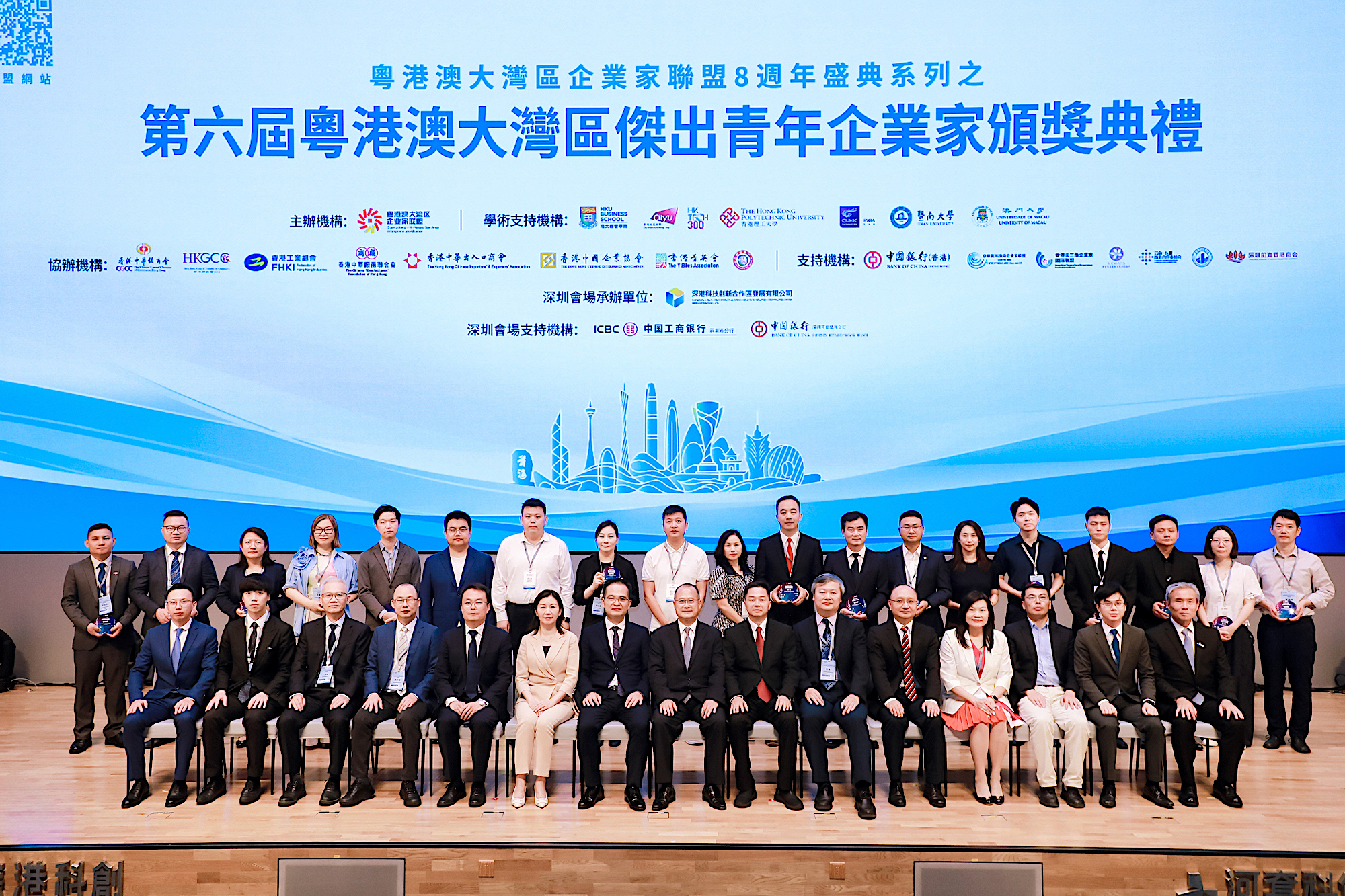 评选活动由粤港澳大湾区企业家联盟主办,获三地政府、高校、商会及媒体鼎力支持,旨在表彰青年企业家在大湾区建设中的贡献,推动区域融合与高质量发展。本届共79位青年企业家获奖,并获得三地政府领导祝贺。
