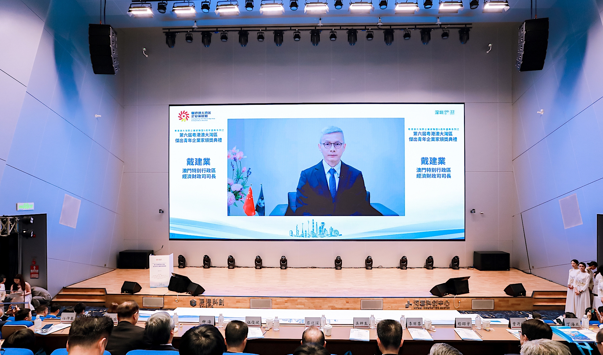 9月22日,第六届粤港澳大湾区杰出青年企业家评选颁奖典礼在中国香港、澳门和深圳三地同步举行。
