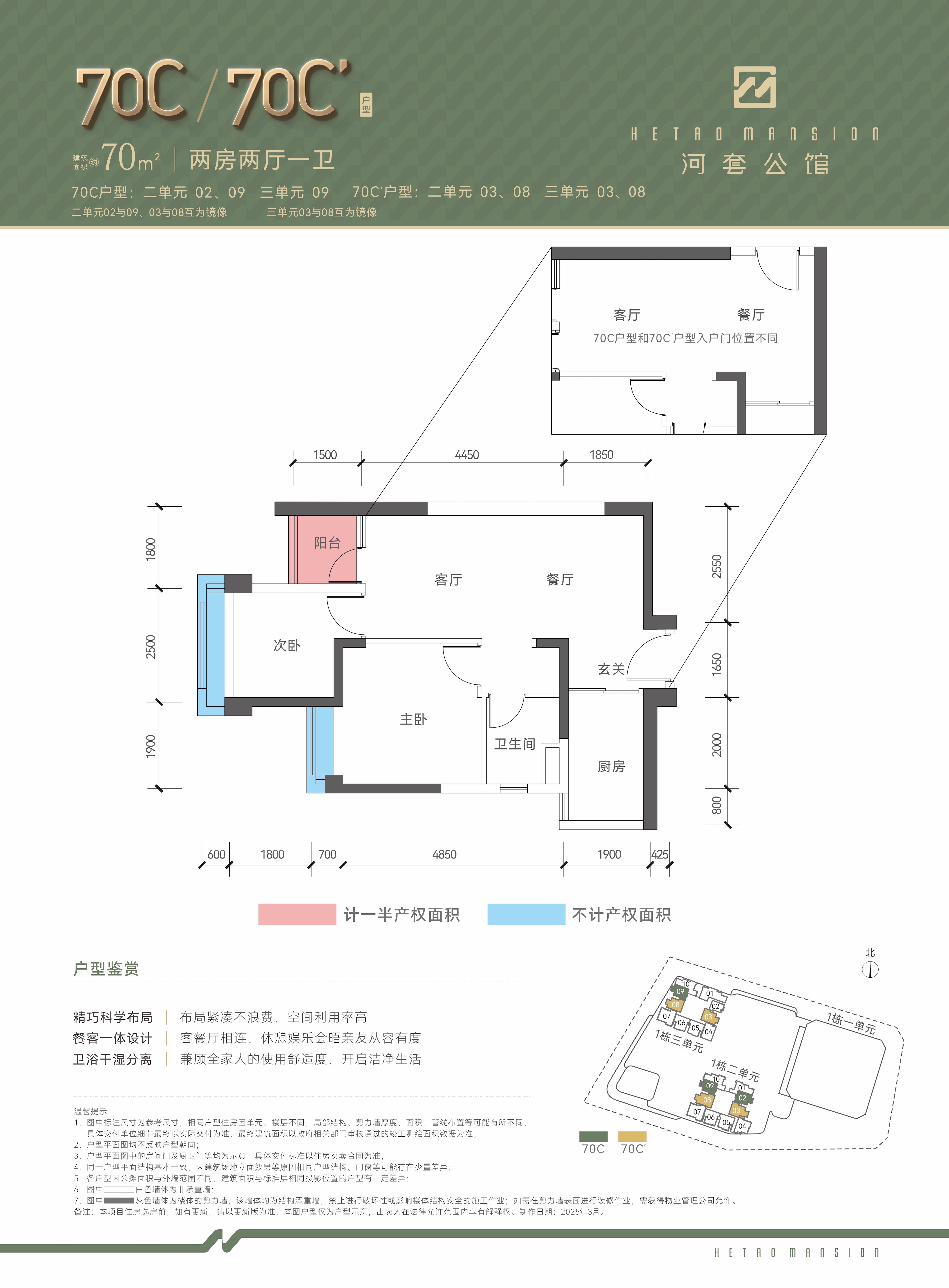 两房两厅一卫(70C)