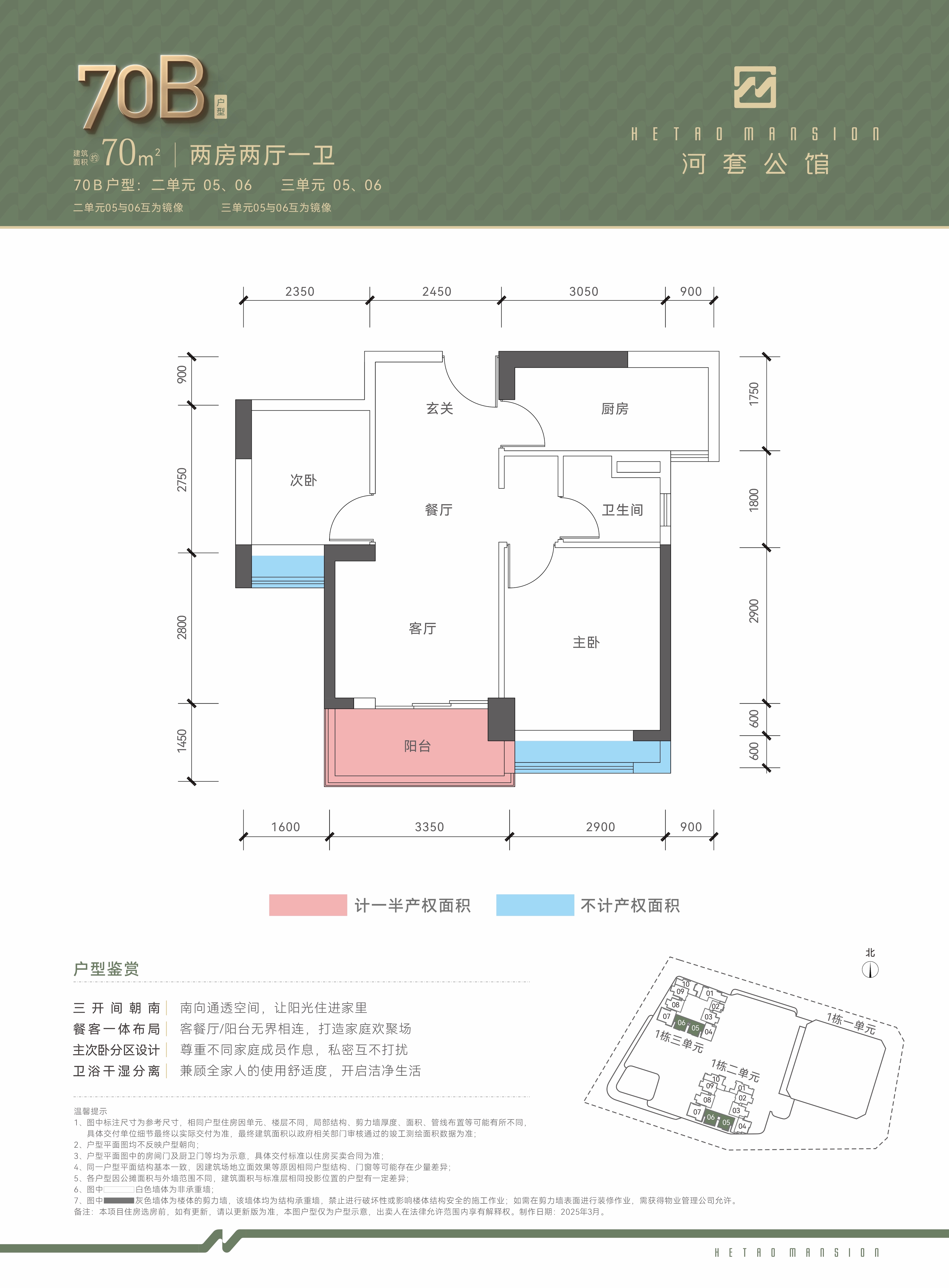 两房两厅一卫(70E)