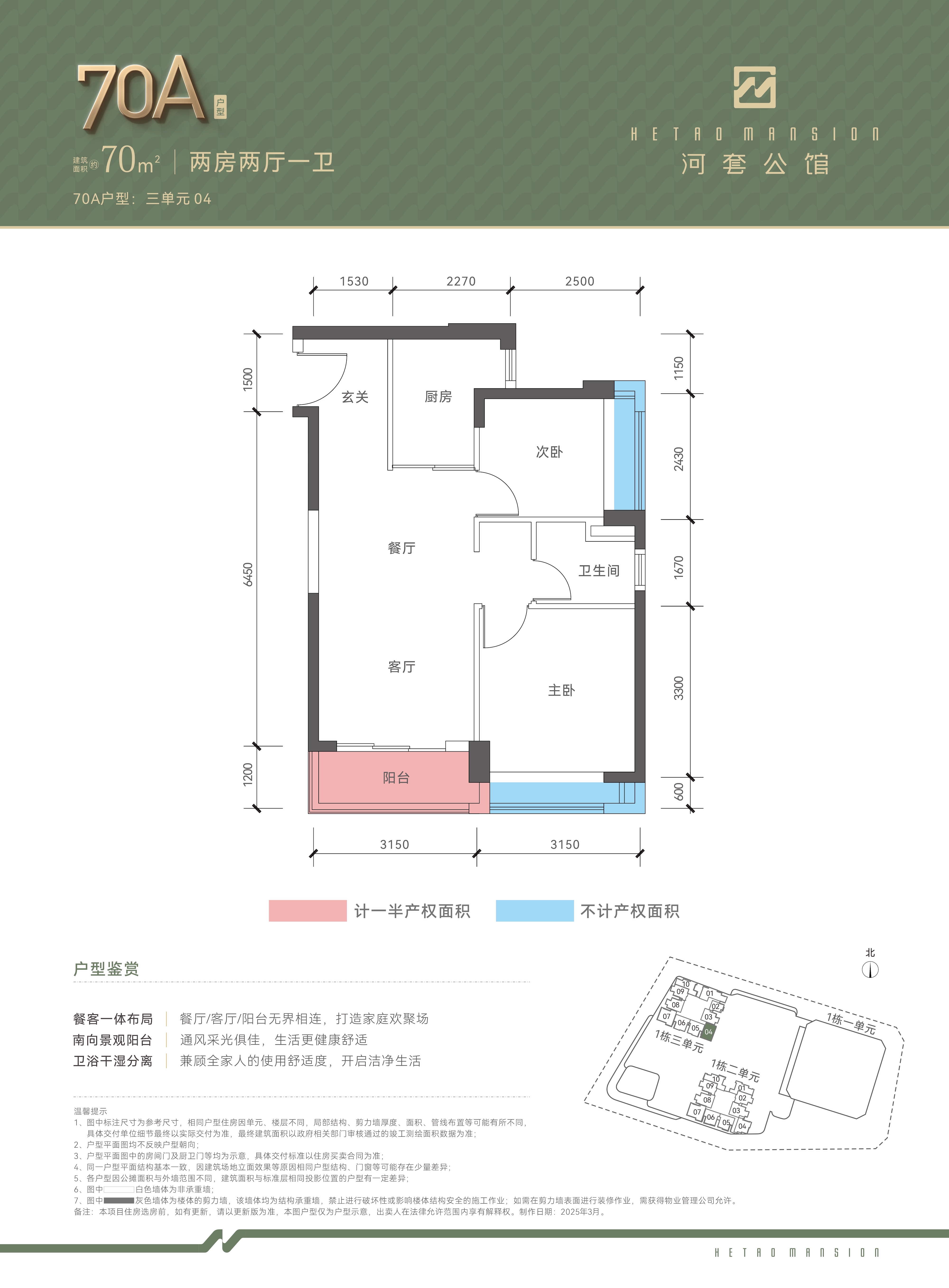 两房两厅一卫(70A)