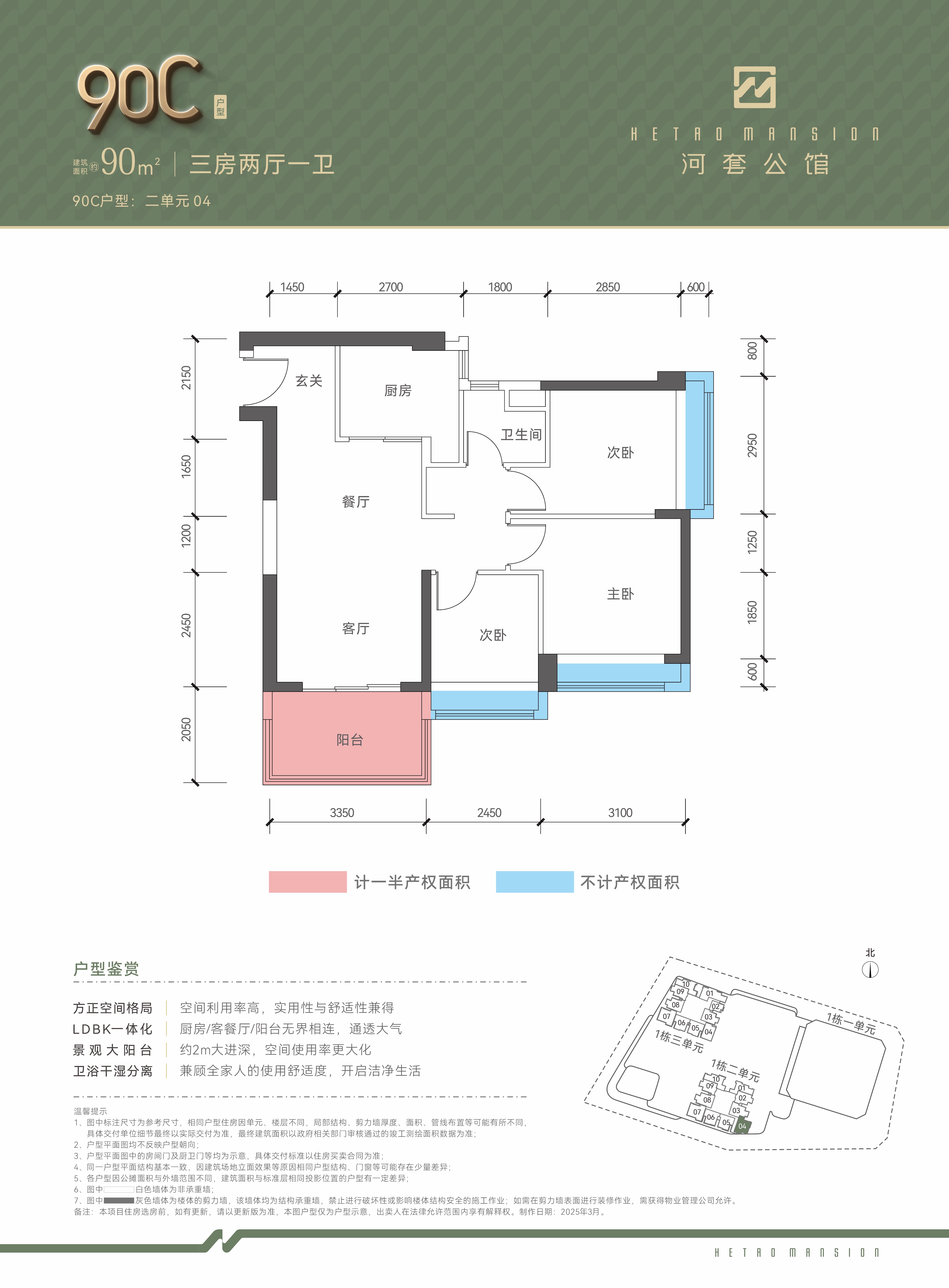 三房两厅一卫(90C)
